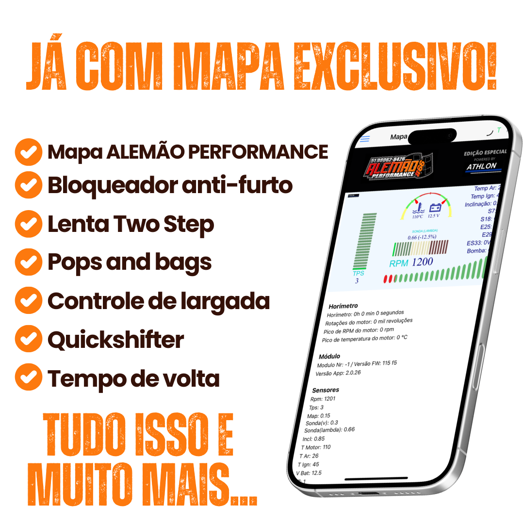 Com controle total sobre os mapas de combustível e ignição, esse módulo oferece maior precisão e flexibilidade para motos originais ou com modificações, permitindo otimização de desempenho, resposta do acelerador e eficiência do motor.