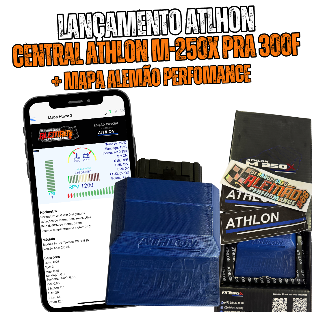 A Central Athlon para Honda CRF300F é um módulo eletrônico de injeção 100% programável e plug & play, desenvolvido para substituir a ECU original sem cortar fios e permitir ajustes personalizados de performance diretamente pelo celular via Bluetooth.