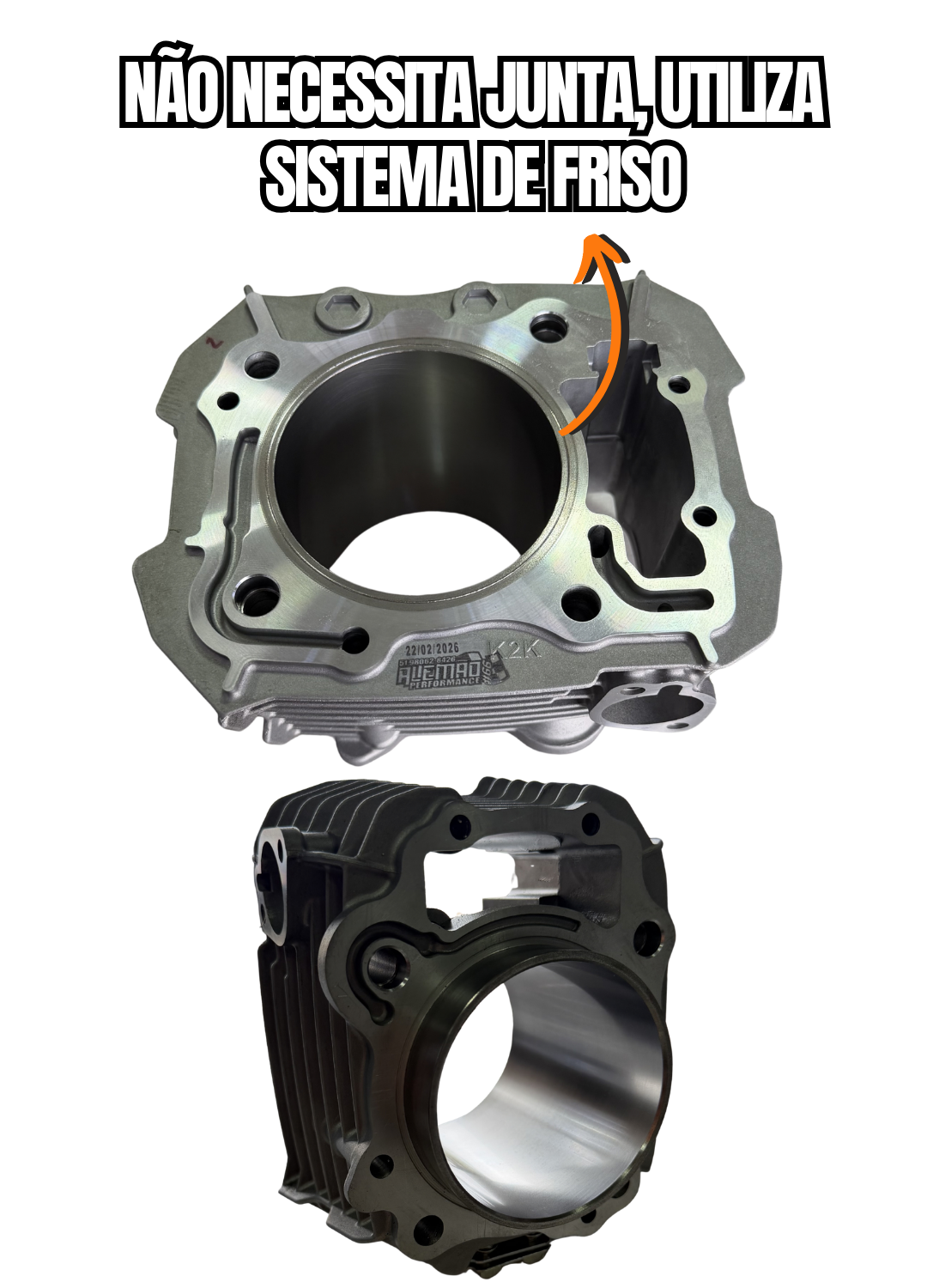 ✔️ Cilindro encamisado (com camisa grossa – retifica até 88mm) pronto para montagem